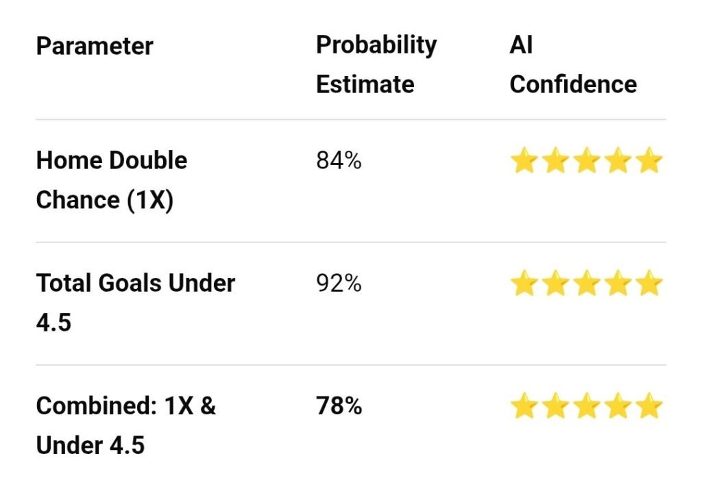 🛡️ Value Play: If you are looking for higher odds, 1X & Under 3.5 Goals pushes the price to approximately 1.85, with a high statistical probability of 68%